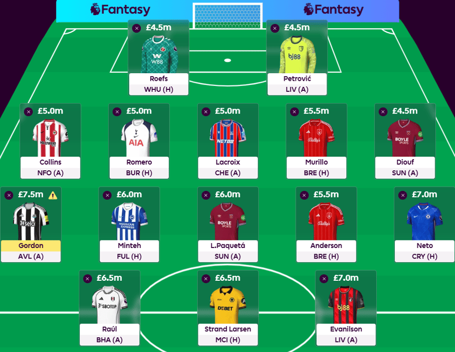 Novi golman Sanderlenda će imati pune ruke posla, ali je to čak i poželjno jer će redovno donositi poene za odbrane. U holandskom NEC-u je prošle sezone bio 4. golman lige po broju odbrana (113) i procentu odbrana (72.8%), ali je bio ubedljivo prvi po broju odbranjenih očekivanih golova gde je sprečio njih 9.7. To dovoljno govori da možemo očekivati brojne poene za odbrane, a i poneki bonus. Sanderlend ima veoma povoljan raspored, a od jeftinih golmana bi se ponajbolje rotirao sa Vulvsima i Žozeom Saom. Od svih startnih golmana ima najmanji procenat vlasništva.