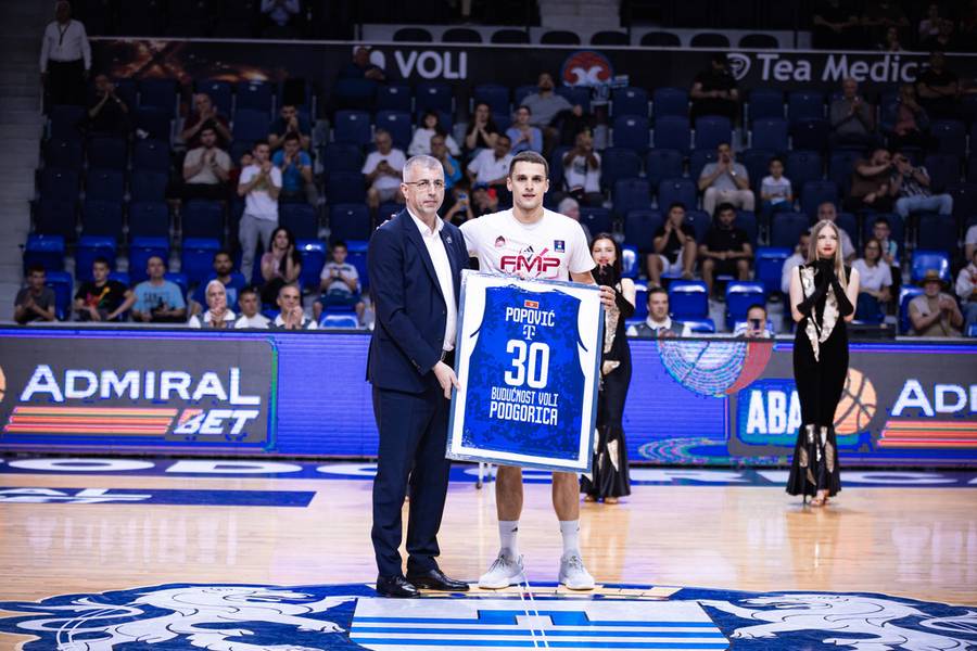 Uoči utakmice sportski direktor Budućnosti, Gavrilo Pajocić uručio je poklon bivšem kapitenu kluba Petru Popoviću, koji nastupa za FMP.